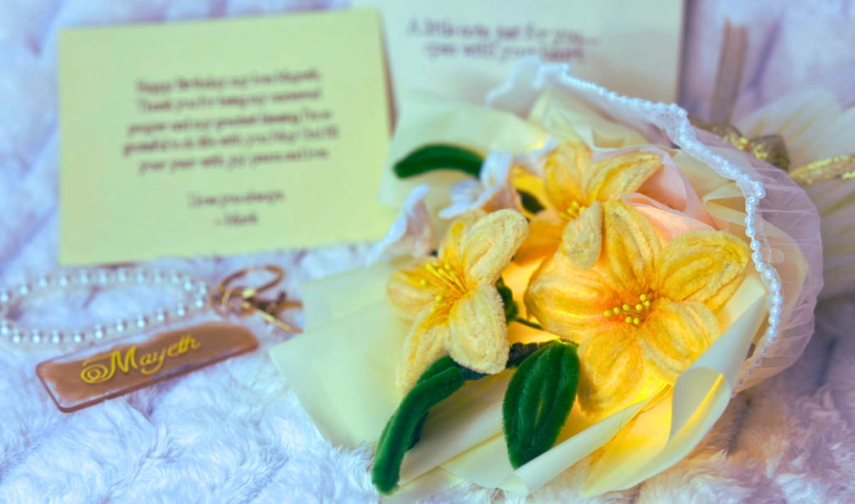 From fuzzy wire flowers to personalized keepsakes, every custom order is created to feel personal, intentional, and truly special.